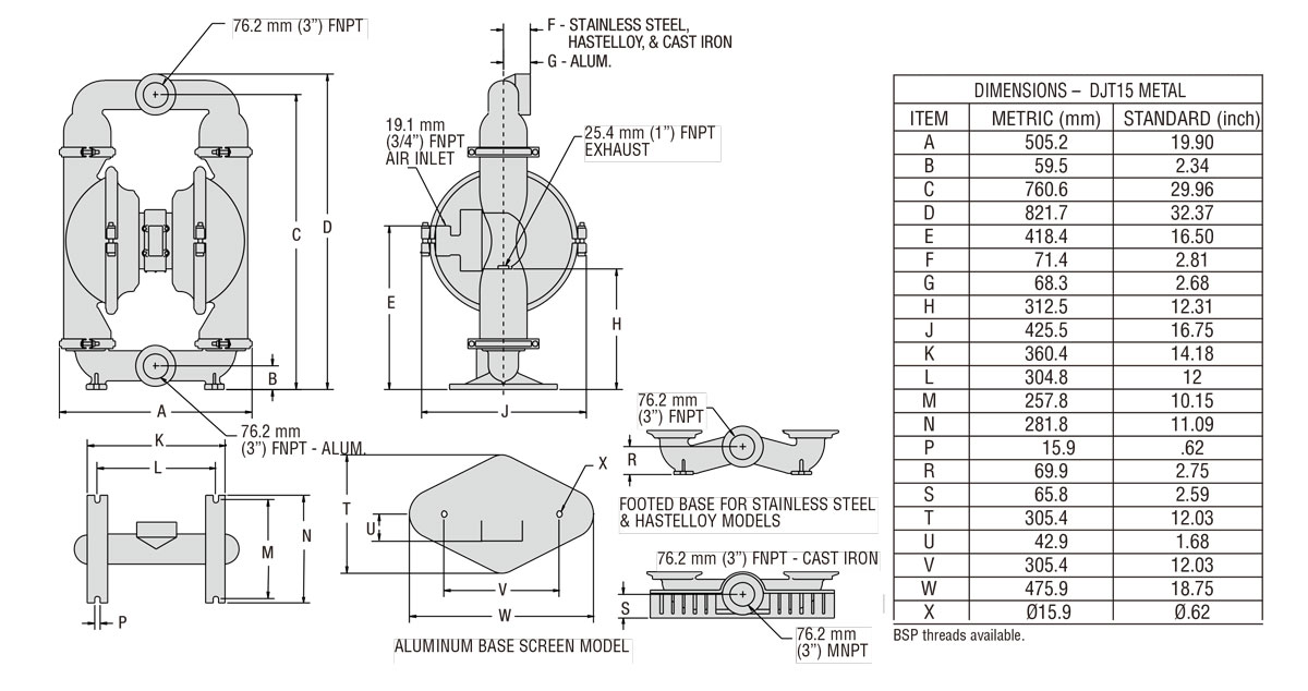 Air Operated Double Diaphragm Pump; Pneumatic Aluminum, Stainless, Cast Iron Diaphragm Pump